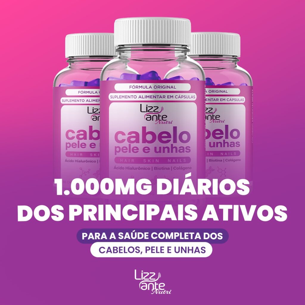 Cabelos volumosos, pele firme e unhas fortes em um só produto! Com a fórmula avançada da Lizz ante Nutri, você vai notar até 25.000 fios a mais e uma pele visivelmente mais jovem. Frete grátis para todo o Brasil!